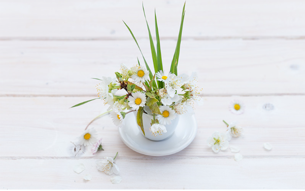 Place a small bunch of daisies in a jar or ceramic pot on your bedside table. It’s a simple way to lift your mood each morning and evening. Stick to white or pale pink varieties for a calming effect, or go for bold colours to make the flowers a focal point.